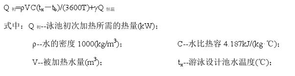 游泳池補充水加熱所需的熱量,應按下式計算: