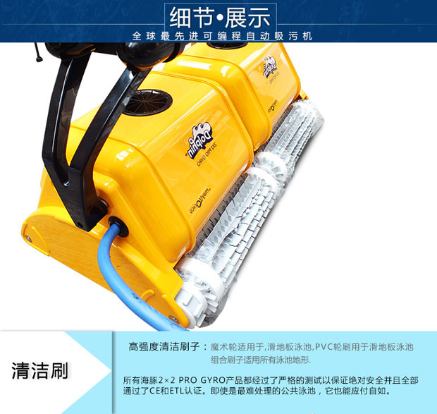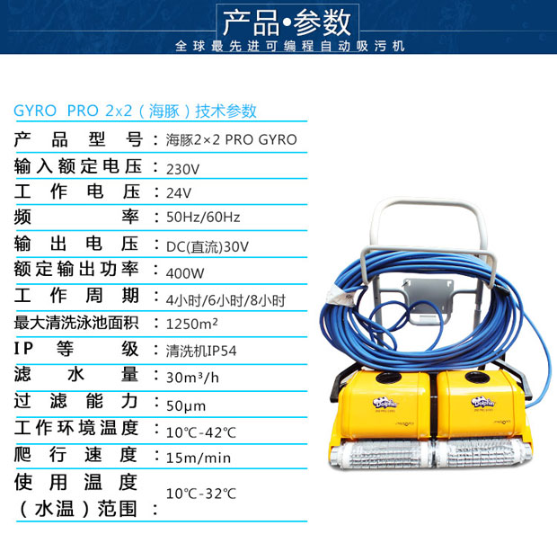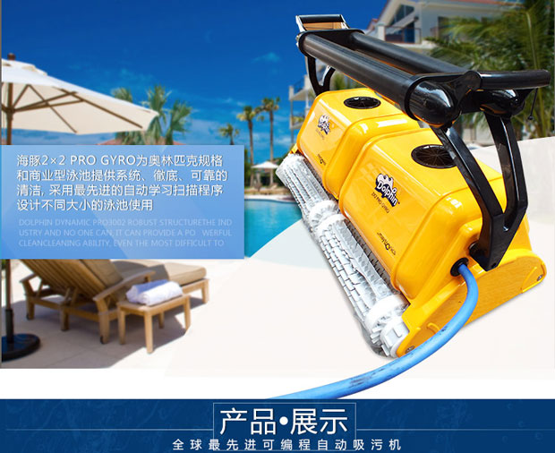海豚2x2游泳池吸污機是以色列軍工轉民用產品代表,配電線防纏繞設備,配陀螺儀,標準直線行走,可爬墻清洗池壁及水線,近幾屆奧運會指定使用產品,全球市場份額40%。