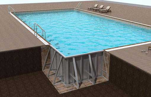 鋼結(jié)構(gòu)拆裝式游泳池是近年來新興的泳池形式,其特征在于具有底板和側(cè)板,底板為幾何造型的塊狀結(jié)構(gòu)拼裝在一起,接縫處設(shè)密封橡膠墊,側(cè)板采用側(cè)向支撐筋支撐固定。具有組裝快捷、便于移動、省錢省時、使用安全、節(jié)能節(jié)水、造型美觀、便于安裝等特點。